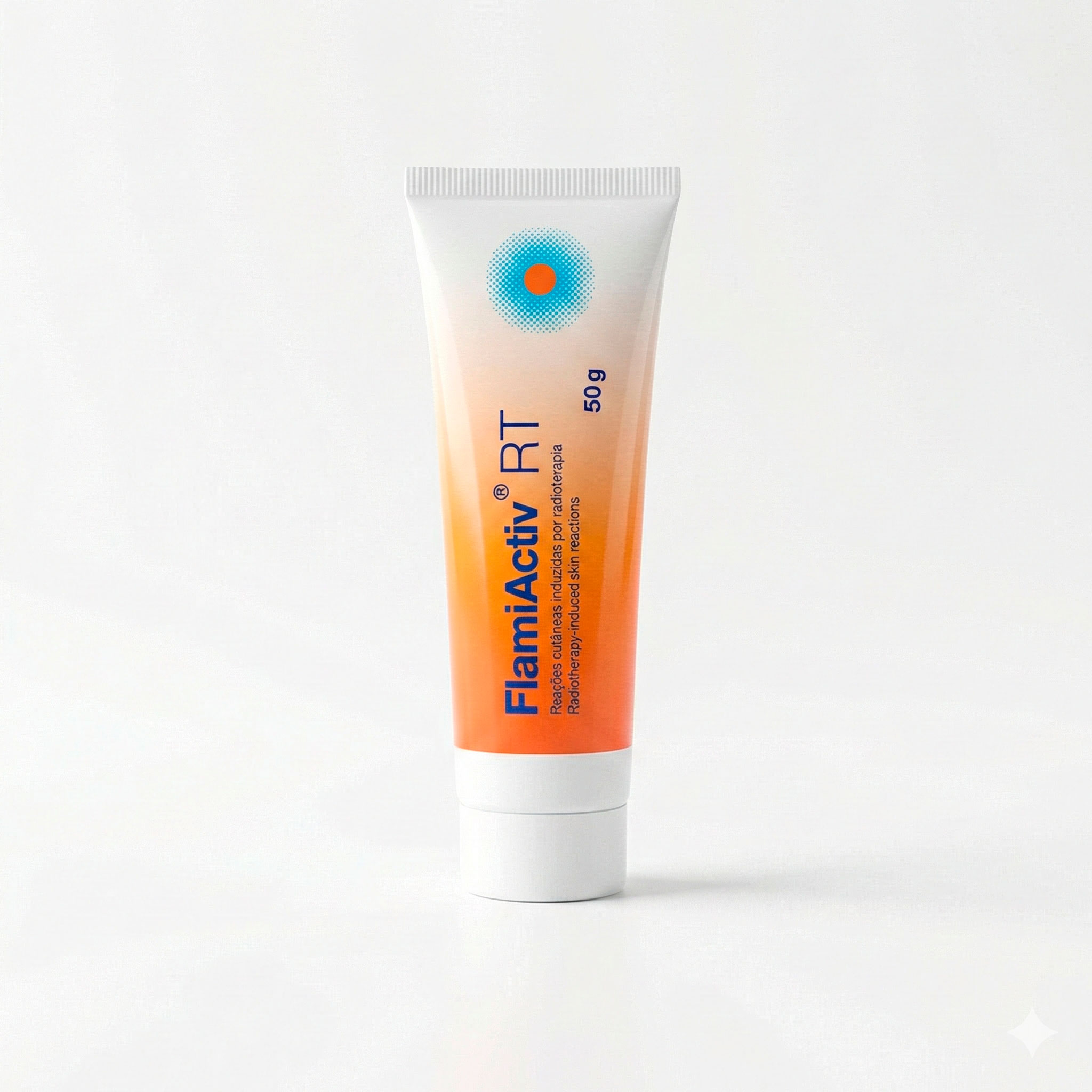 • FlamiActiv® RT reduz a intensidade dos sintomas iniciais das reações cutâneas provocadas pela radioterapia, como a pele vermelha, seca, escamosa, descamada ou irritada (descamação seca).